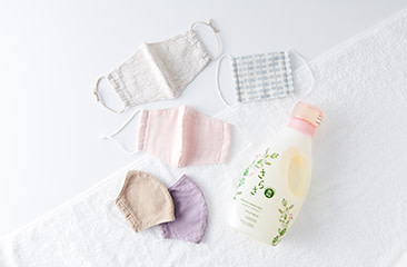 新たな生活様式の中で必需品のマスク。 マスクは様々な種類がありますが、使い捨てだと経済的にも資源的にももったいない……と感じている方も多いのではないでしょうか。サステナブルを意識した時、洗って繰り返し使える布マスクを選ぶこともありますよね。 でも、直接お肌に身に着ける布マスクですから、清潔に保つためにもお手入れは気を付けたいところ。 今回は、3ステップで完了する簡単な洗い方やお肌にも安心して使える洗剤選びのポイントなど、布マスクのお手入れ方法の疑問を解決! マスクを心地よく使い、今の時代にフィットしたサステナブルな生活を取り入れるためのヒントをお伝えします。